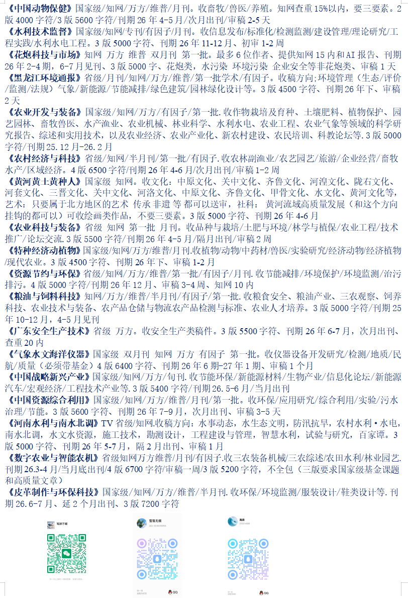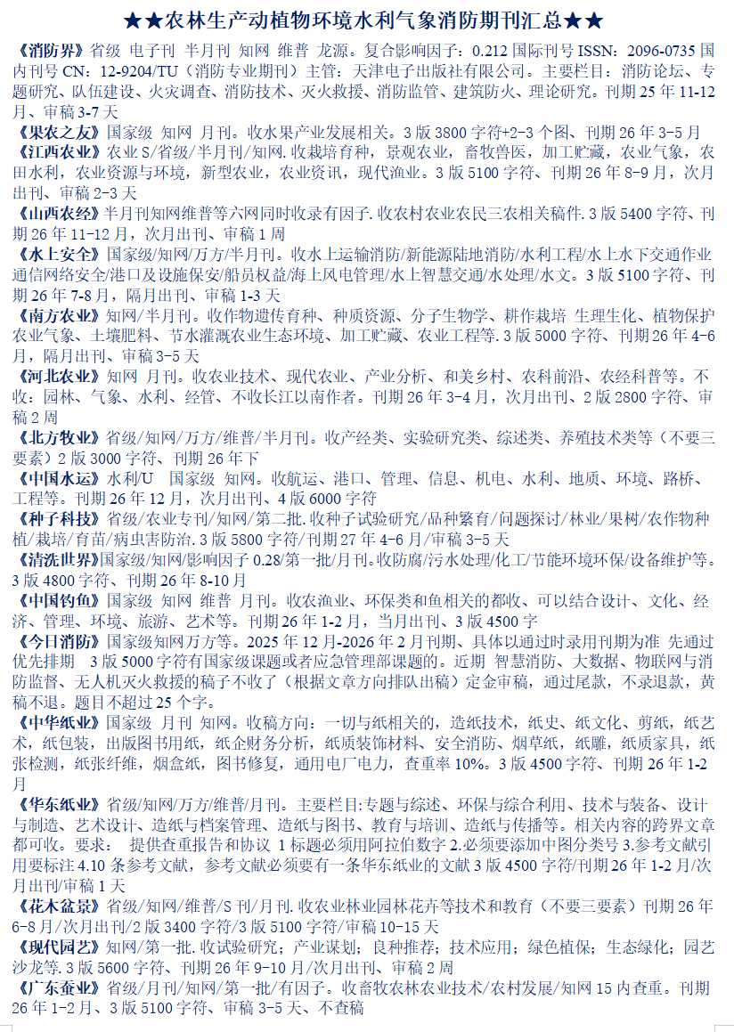 ★★农林生产动植物环境水利气象消防期刊汇总★★