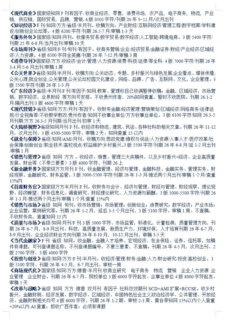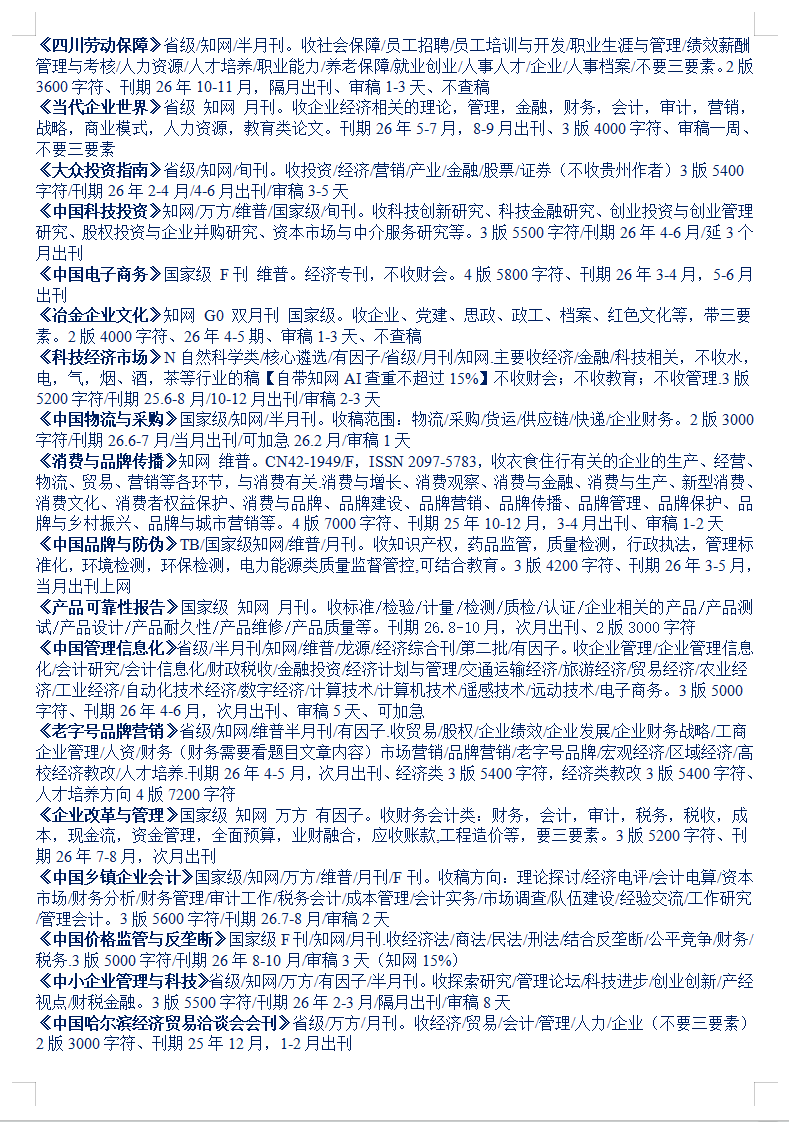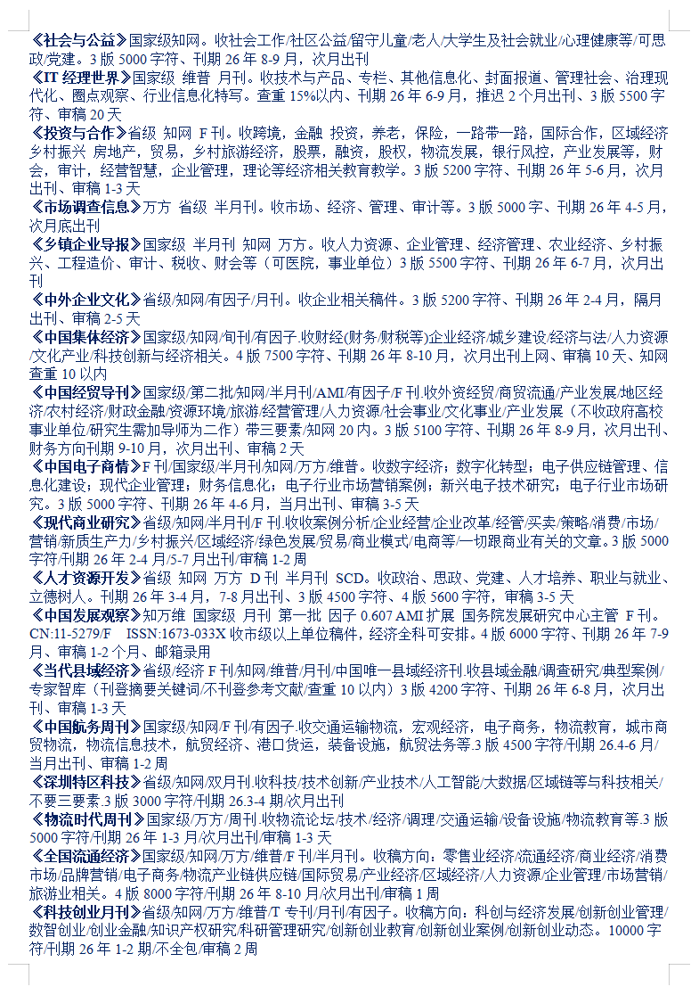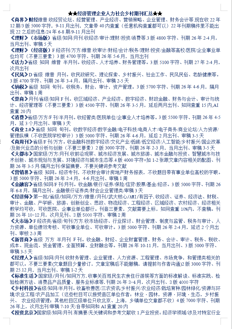 26-27年经济管理企业人力社会乡村期刊汇总