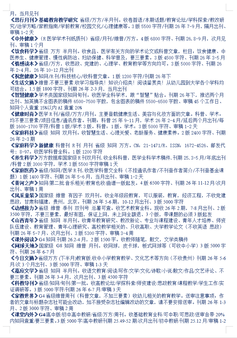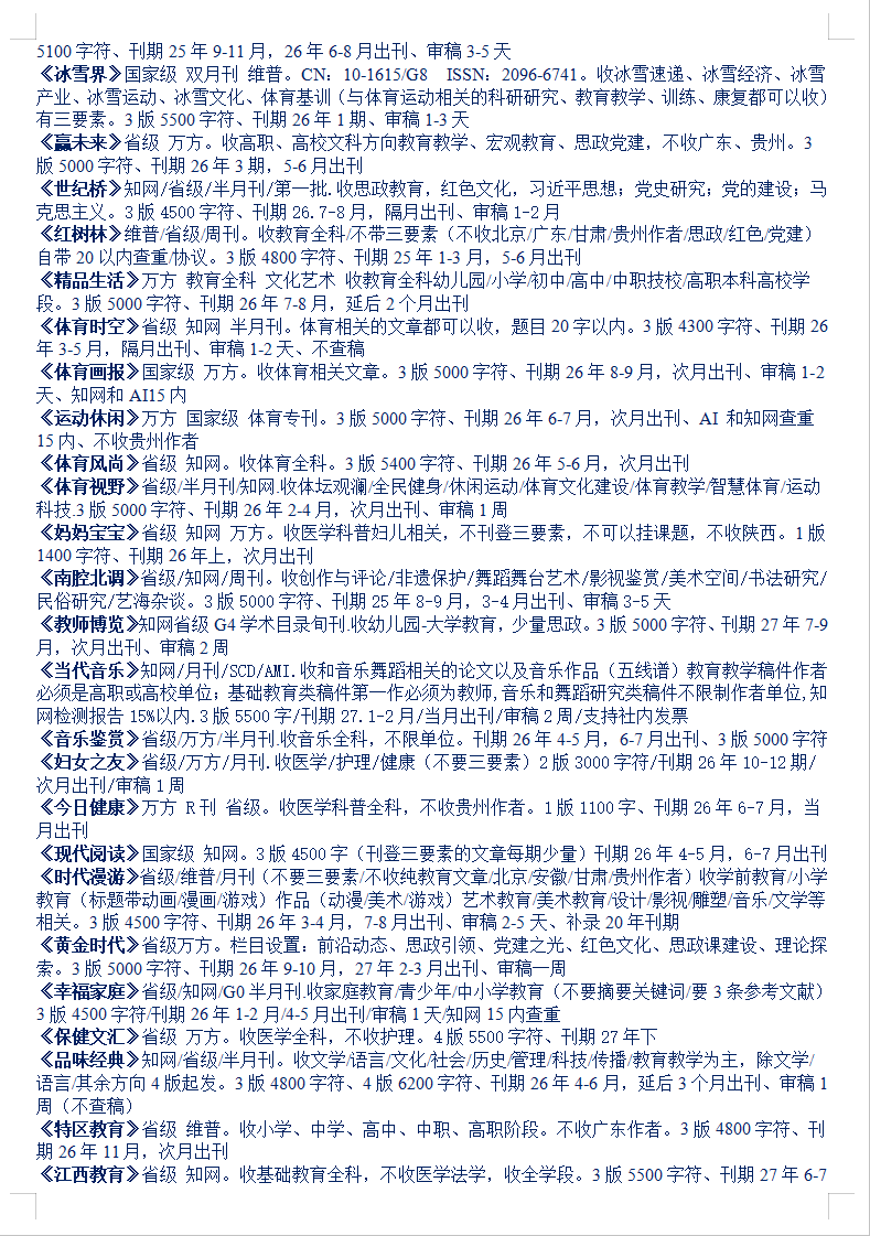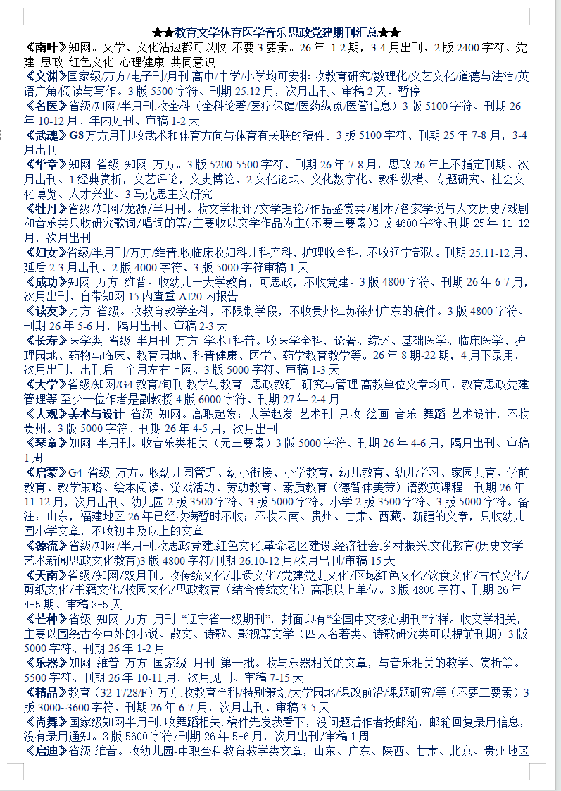 26-27年教育文学体育医学音乐思政党建期刊汇总