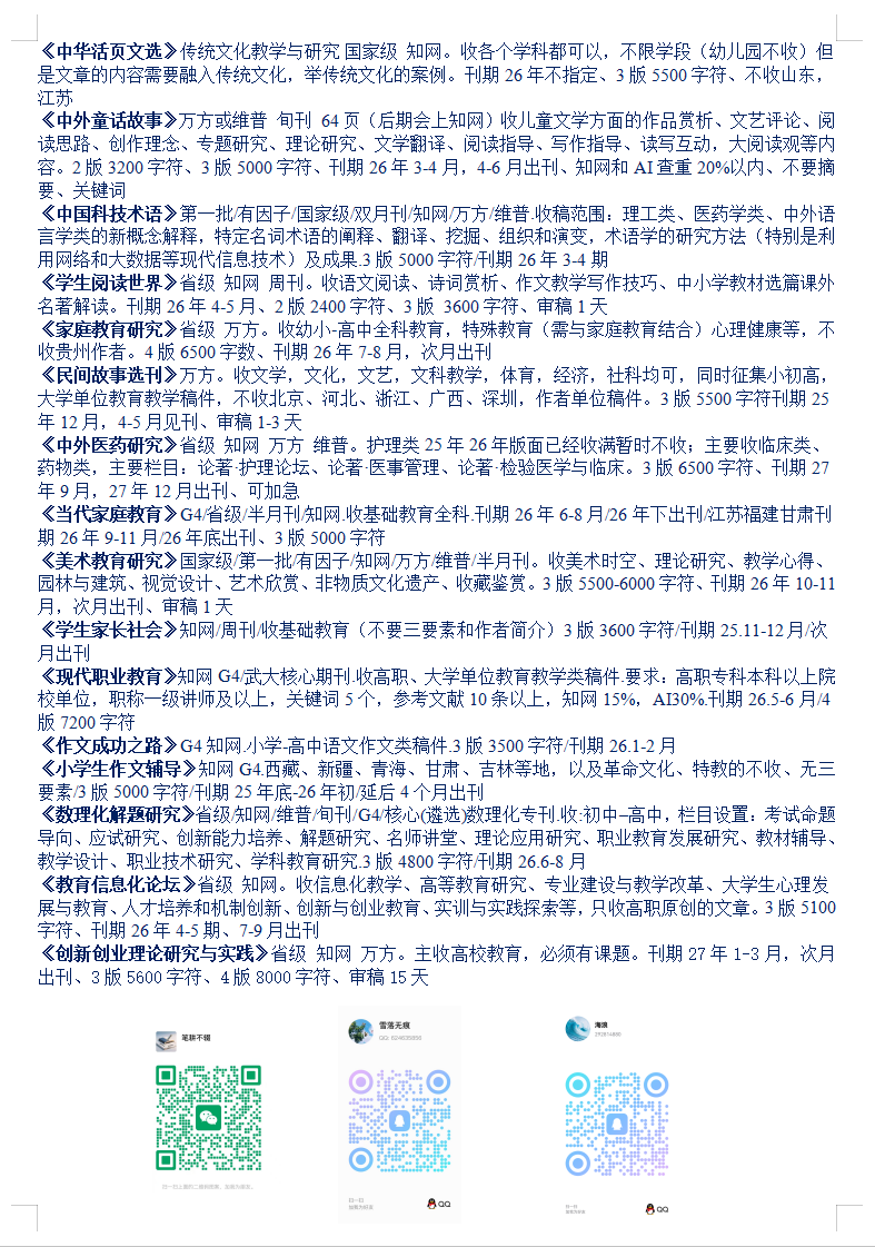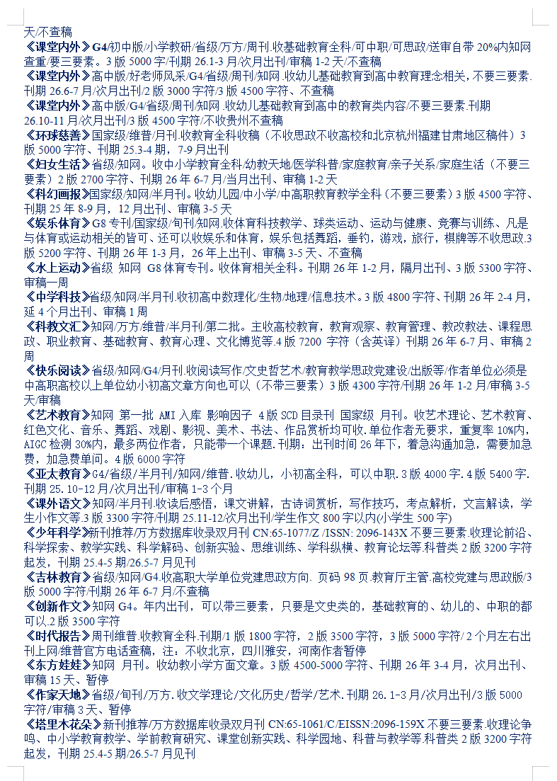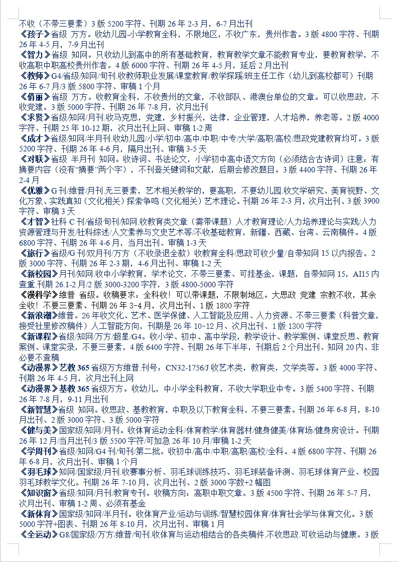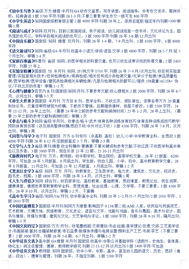 26-27年教育文学体育医学音乐思政党建期刊汇总